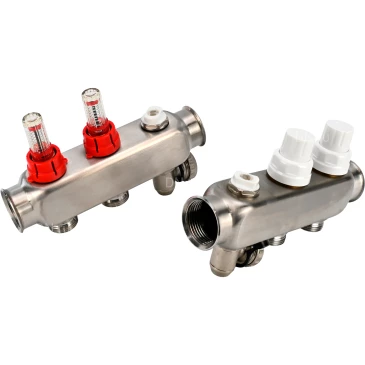 Коллекторная группа DN.ru GC2-31-2 1″ Ду25 Ру10 отводов — 2, в сборе с расходомерами и терморегулирующими клапанами, дренажным краном и воздухоотводчиком, с заглушками, без переходников, корпус - нержавеющая сталь AISI 304