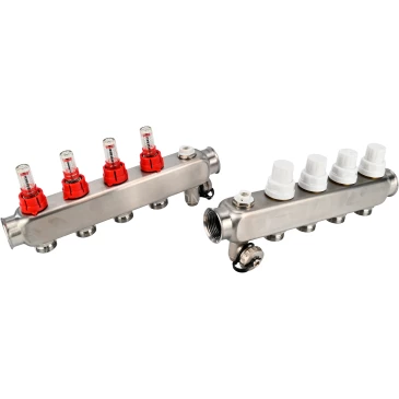Коллекторная группа DN.ru GC2-31-4 1″ Ду25 Ру10 отводов — 4, в сборе с расходомерами и терморегулирующими клапанами, дренажным краном и воздухоотводчиком, с заглушками, без переходников, корпус - нержавеющая сталь AISI 304