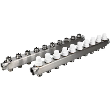 Коллекторная группа DN.ru GC3-31-10 1″ Ду25 Ру10 отводов — 10, в сборе с терморегулирующими клапанами и запорно-балансировочными клапанами, без переходников, корпус - нержавеющая сталь AISI 304