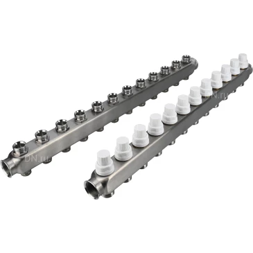 Коллекторная группа DN.ru GC3-31-12 1″ Ду25 Ру10 отводов — 12, в сборе с терморегулирующими клапанами и запорно-балансировочными клапанами, без переходников, корпус - нержавеющая сталь AISI 304