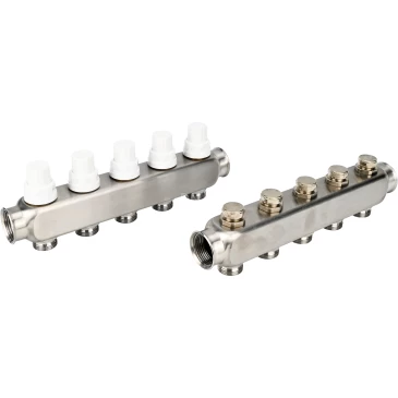 Коллекторная группа DN.ru GC3-31-5 1″ Ду25 Ру10 отводов — 5, в сборе с терморегулирующими клапанами и запорно-балансировочными клапанами, без переходников, корпус - нержавеющая сталь AISI 304