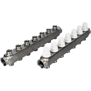 Коллекторная группа DN.ru GC3-31-7 1″ Ду25 Ру10 отводов — 7, в сборе с терморегулирующими клапанами и запорно-балансировочными клапанами, без переходников, корпус - нержавеющая сталь AISI 304