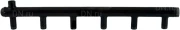 Коллекторы Элит Металл EM50 Ду40 Ру10, выходов-3х3/4″-11х3/4″ наружная резьба, присоединение - наружная резьба 3/4″, межосевое расстояние 50 мм, сталь