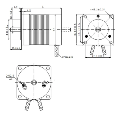 Габаритные и установочные размеры электродвигателя бесколлекторного FL57BLS02
