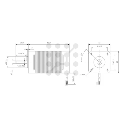 Эскиз габаритов электродвигателя бесколлекторного PL42BLF80-240 | |