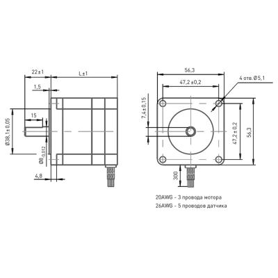 Габаритные и установочные размеры электродвигателя бесколлекторного PL57BLF01