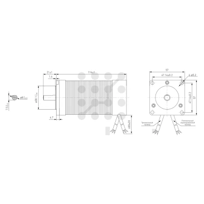 Эскиз габаритов электродвигателя бесколлекторного PL57BLF115-230 | |