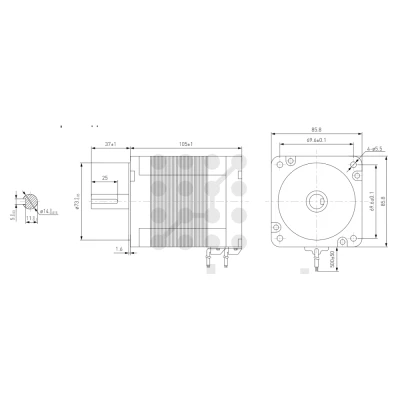 Эскиз габаритов электродвигателя бесколлекторного PL86BLF105-430 | |