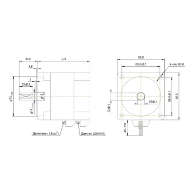 | Эскиз габаритов электродвигателя бесколлекторного PL86BLM02 |