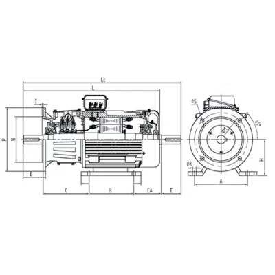 | Эскиз габаритов электродвигателя ЭЛМАШ МТН 112-6-IM2002-5-922 |