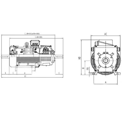 | Эскиз габаритов электродвигателя ЭЛМАШ МТН 611-10-IM1004-45-583-Б01 |
