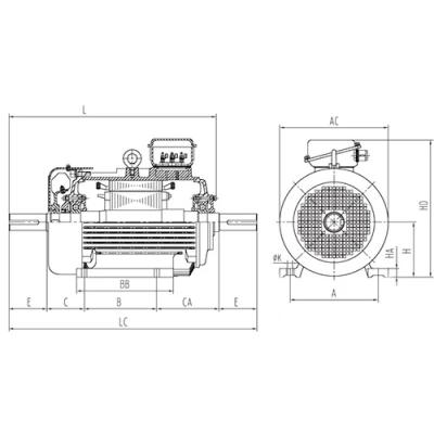 | Эскиз габаритов электродвигателя ЭЛМАШ МТKН 312-8-IM1001-11-691 |