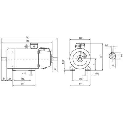 | Эскиз габаритов электродвигателя ПРАКТИК МТН 132 LA6 кранового, монтажное исполнение IM1001, мощность - 5.5кВт, частота вращения ~900об/мин |