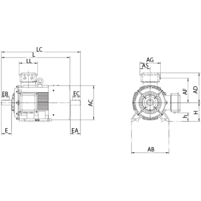 | Эскиз габаритов электродвигателя BEIDE 1TL0022-1DC23-3AA4-Z |