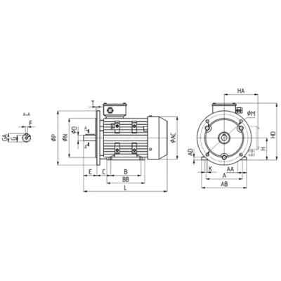 Габаритные и установочные размеры электродвигателя INNORED RM100L2-4 B35