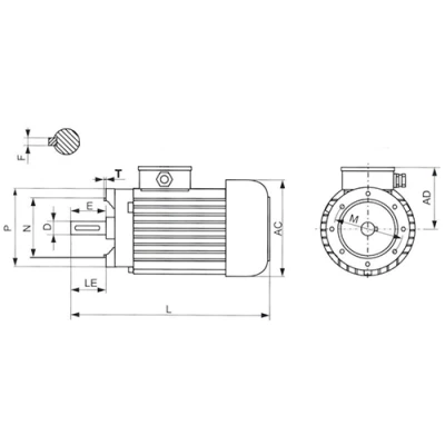 | Эскиз габаритов электродвигателя INNOVARI MB63A4 B14 |