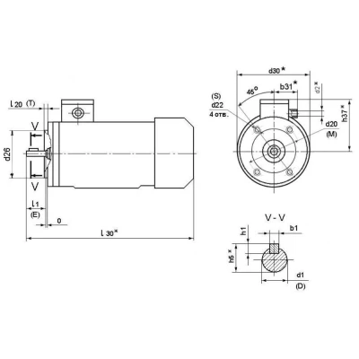| Эскиз габаритов Электродвигатель общепромышленный Красный Маяк 5А50МА4, напряжение 220/380В, мощность 0.06 кВт, частота вращения ~ 1380 об/мин, исполнение — IM3681 |