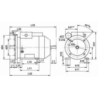 | Эскиз габаритов электродвигателя МЭЗ АИР 100L8-IM3082-1.5-750 |