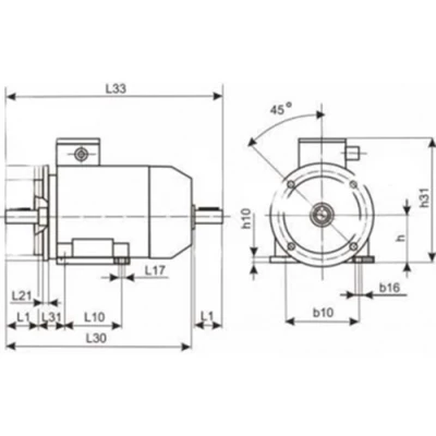 | Эскиз габаритов электродвигателя МЭЗ АИС 112M2-IM3681-4-3000 |
