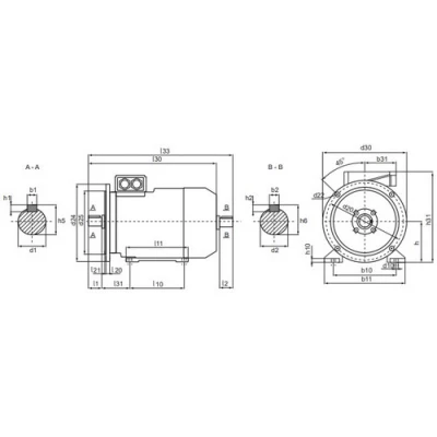 | Эскиз габаритов электродвигателя ПРАКТИК АИС 63 В4 общепромышленного, монтажное исполнение IM2081, мощность - 0.18кВт, частота вращения ~1500об/мин |