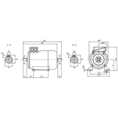 | Эскиз габаритов электродвигателя ПРАКТИК АИС 71 С4 общепромышленного, монтажное исполнение IM1081, мощность - 0.55кВт, частота вращения ~1500об/мин |