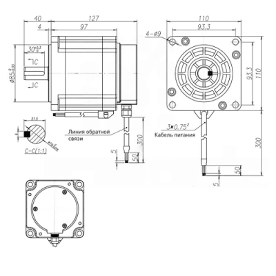 Габариты и размеры шагового электродвигателя 110H