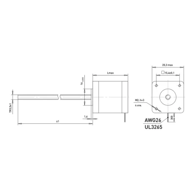 | Эскиз габаритов электродвигателя шагового 14HY2402-350TR6.35x1.58 |