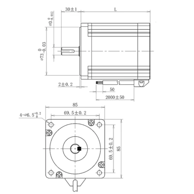 | Эскиз габаритов электродвигателя шагового трехфазного 3PL86H125-D14 |
