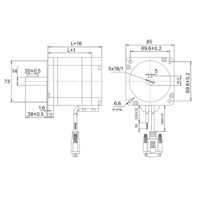 Габаритные и установочные размеры шагового серводвигателя PL86H5401-D14-1K