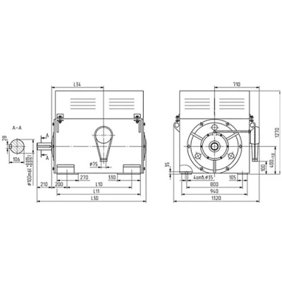 | Эскиз габаритов электродвигателя ЭЛМАШ А4 400-8-IM1001-250-750 |
