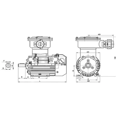 Предназначены для привода механизмов внутренних и наружных установок в газовой, нефтедобывающей, химической и других смежных отраслях промышленности (кроме рудничных производств), где могут образовываться взрывоопасные газо- и паро-воздушные смеси, отнесенные к категориям IIA и IIB и группам воспламеняемости T1, T2, T3, T4. Рассчитаны для работы от сети переменного трехфазного тока частотой 50Гц, напряжение 380В, 380, 380/660 В, степень защиты IP55, класс изоляции F, метод охлаждения IC411, класс энергоэффективности IE1. Тип взрывозащиты 1ExdIIBT4. Климатические исполнения: У, УХЛ, Т по ГОСТ 15150. | |||||||||||||||||||||||||||||||