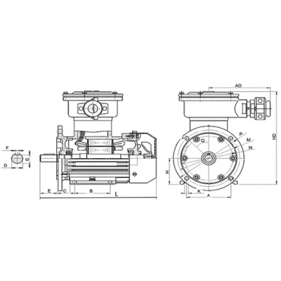 Предназначены для привода механизмов внутренних и наружных установок в газовой, нефтедобывающей, химической и других смежных отраслях промышленности (кроме рудничных производств), где могут образовываться взрывоопасные газо- и паро-воздушные смеси, отнесенные к категориям IIA и IIB и группам воспламеняемости T1, T2, T3, T4. Рассчитаны для работы от сети переменного трехфазного тока частотой 50Гц, напряжение 380В, 380, 380/660 В, степень защиты IP55, класс изоляции F, метод охлаждения IC411, класс энергоэффективности IE1. Тип взрывозащиты 1ExdIIBT4. Климатические исполнения: У, УХЛ, Т по ГОСТ 15150. | |||||||||||||||||||||||||||||||||
