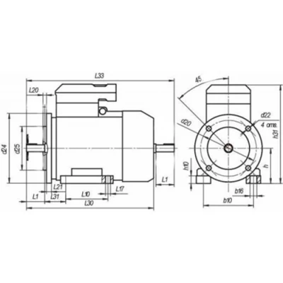 Габаритные и установочные размеры электродвигателя МЭЗ 4ВР 63А4-IM2081-0.25-1500-1ExdeIIBT4