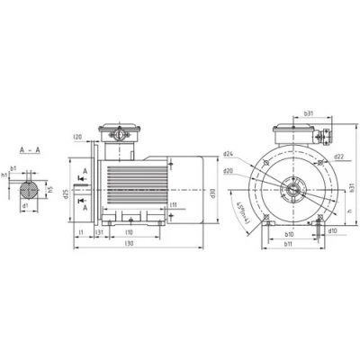 | Эскиз габаритов электродвигателя ПРАКТИК ВА 100 L2 взрывозащищенного, монтажное исполнение IM2081, мощность - 5.5кВт, частота вращения ~3000об/мин |