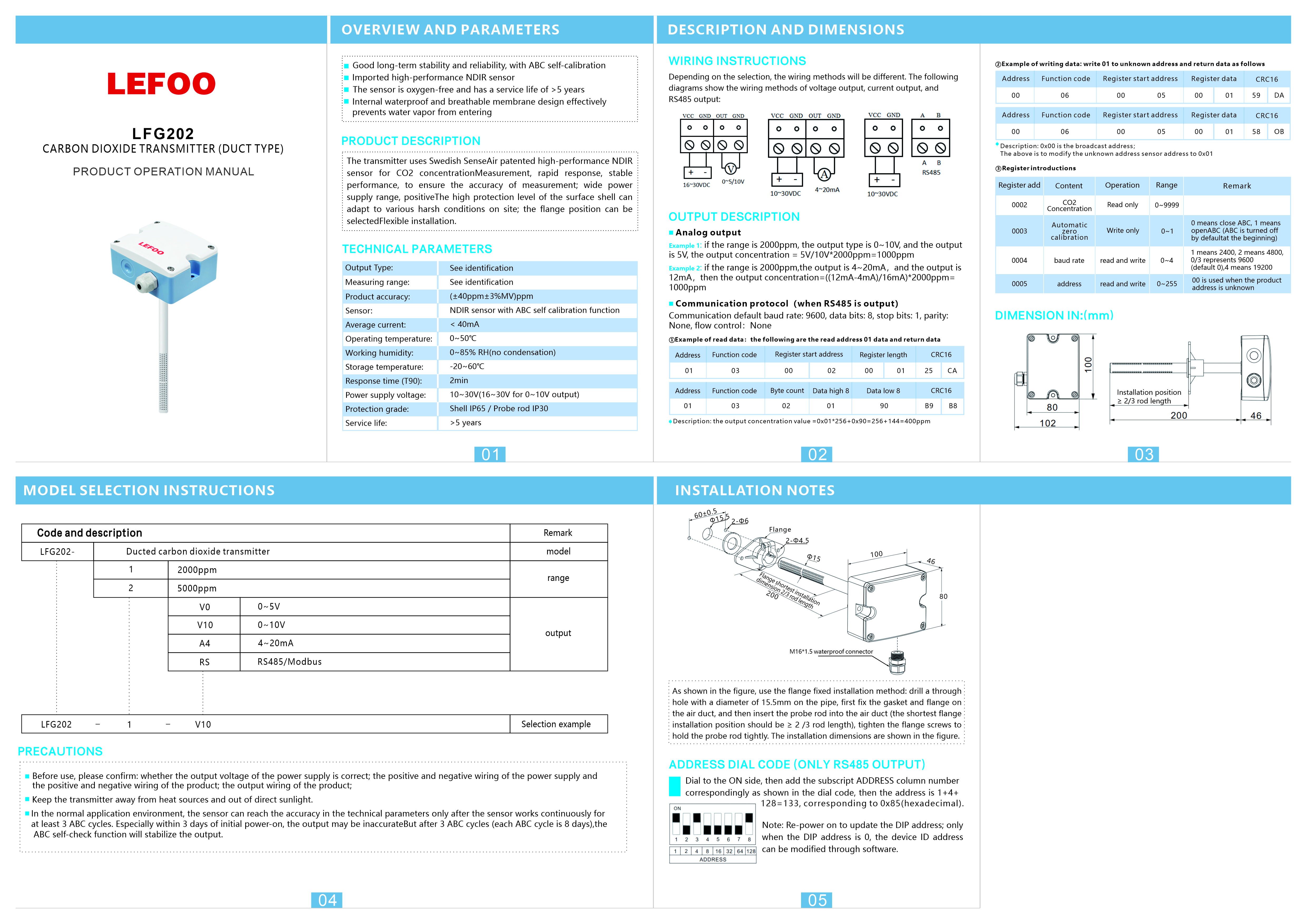 Технические параметры датчика концентрации RGP LFG202-2-A4 углекислого газа