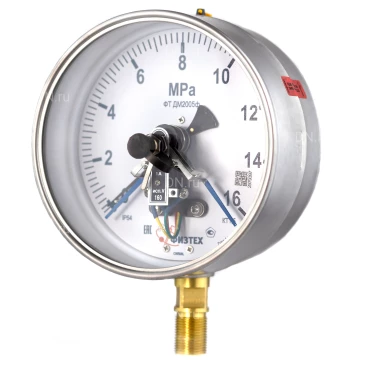 Манометр ФИЗТЕХ ДМ2005ф 0-16 МПа d.160 класс точности 1.5, резьбовое соединение М20х1.5, степень защиты корпуса IP40, электроконтактный, с сигнализирующим устройством тип V, радиальное присоединение