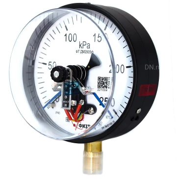 Манометр ФИЗТЕХ ДМ2005ф 0-250 кПа d.160 класс точности 1.5, резьбовое соединение М20х1.5, степень защиты корпуса IP40, электроконтактный, с сигнализирующим устройством тип V, радиальное присоединение