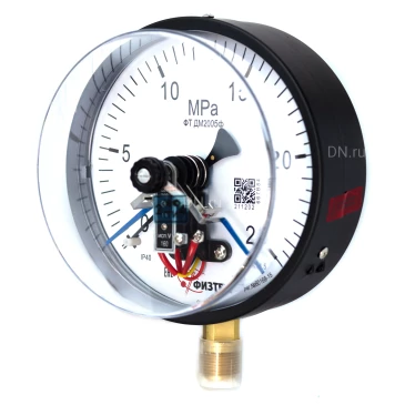 Манометр ФИЗТЕХ ДМ2005ф 0-25 МПа d.160 класс точности 1.5, резьбовое соединение М20х1.5, степень защиты корпуса IP40, электроконтактный, с сигнализирующим устройством тип V, радиальное присоединение
