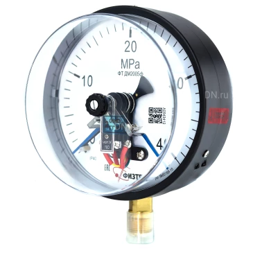 Манометр ФИЗТЕХ ДМ2005ф 0-40 МПа d.160 класс точности 1.5, резьбовое соединение М20х1.5, степень защиты корпуса IP40, электроконтактный, с сигнализирующим устройством тип V, радиальное присоединение
