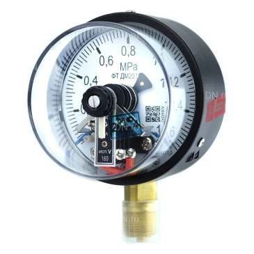 Манометр ФИЗТЕХ ДМ2010ф 0-1.6 МПа d.100 класс точности 1.5, резьбовое соединение М20х1.5, степень защиты корпуса IP40, электроконтактный, с сигнализирующим устройством тип V, радиальное присоединение