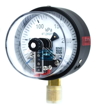 Манометр ФИЗТЕХ ДМ2010ф 0-250 кПа d.100 класс точности 1.5, резьбовое соединение М20х1.5, степень защиты корпуса IP40, электроконтактный, с сигнализирующим устройством тип V, радиальное присоединение