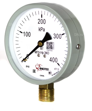 Манометр ФИЗТЕХ МП3-Уф (0-400 кПа) IP40, общетехнический 100мм, исполнение ЭКО, радиальное присоединение, резьба М20х1.5, класс точности 1.5 |