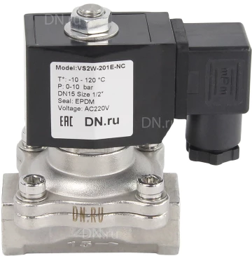 ![]() Клапан электромагнитный соленоидный двухходовой DN.ru VS2W-201E-NC Ду15 Ру10 корпус сталь SS304, прямого действия, присоединение внутренняя резьба 1/2, нормально-закрытый (НЗ), катушка 220B (опрессовано) |