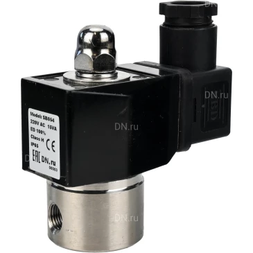 Клапан электромагнитный DN.ru VS331-ET-NC-24VDC 1/8″ Ду6 Ру10, соленоидный двухходовой, корпус - нержавеющая сталь 304, уплотнение - EPDM, резьбовой, нормально-закрытый, прямого действия, катушка - 24В