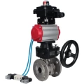 Краны шаровые DN.ru BV3232P(2pc)-FP-F-ISO-H Ду15-200 Ру16-40, фланцевые, полнопроходные, нержавеющая сталь SS316, уплотнение - PTFE, с пневмоприводом PA-DA, пневмораспределителем 4V320-10 220В, БКВ APL-410N Ex, ручным дублером MON