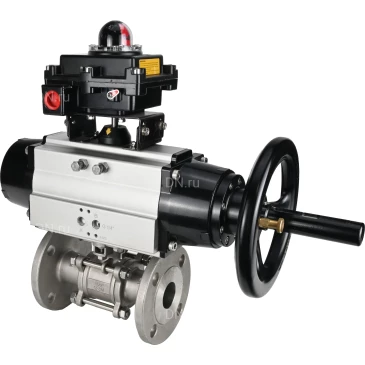 Кран шаровой DN.ru BV3232P(3pc)-FP-F-ISO-H Ду100 Ру25 фланцевый с ISO-фланцем, корпус - нержавеющая сталь 316, полнопроходной, уплотнение - PTFE, с пневмоприводом PA-DA-105-1, БКВ APL-410N Ex |
