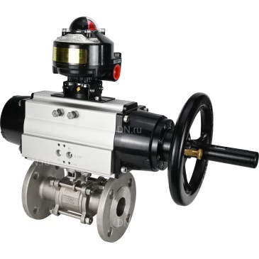 Кран шаровой DN.ru BV3232P(3pc)-FP-F-ISO-H Ду100 Ру25 фланцевый с ISO-фланцем, корпус - нержавеющая сталь 316, полнопроходной, уплотнение - PTFE, с пневмоприводом PA-DA-105-1, БКВ APL-510N Ex |