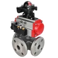 Краны шаровые DN.ru BV3232P(4pc)-FP-3WL-F-ISO-H Ду15-100 Ру16 полнопроходные трехходовые, фланцевые, корпус - нержавеющая сталь SS316, с пневмоприводом DN.ru PA-DA двойного действия, пневмораспределителем 4M310-08 24В и БКВ AP