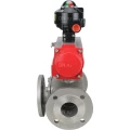 Краны шаровые DN.ru BV3232P(4pc)-FP-3WL-F-ISO-H Ду15-100 Ру16 полнопроходные трехходовые, фланцевые, корпус - нержавеющая сталь SS316, с пневмоприводом DN.ru PA-SA с возвратными пружинами и БКВ APL-510N EX
