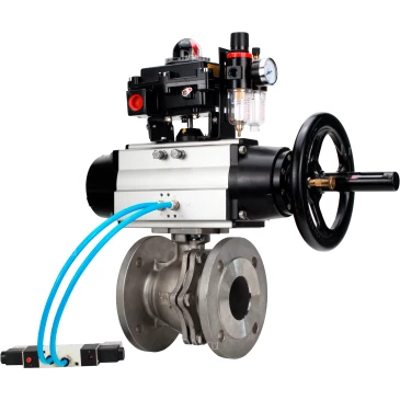 Краны шаровые DN.ru BV3232P(2pc)-FP-F-ISO-H Ду80-100 Ру16, полнопроходные фланцевые, нержавеющая сталь SS316, уплотнение - PTFE, с пневмоприводом PA-DA-105-1 двойного действия, с пневмораспределителем 4V320-10 220В, с БКВ APL-410N EX, с БПВ AFC2000 |